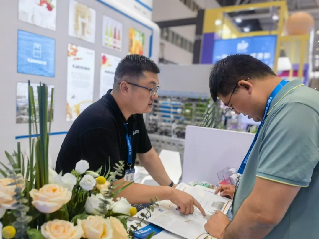 本优团队全面地向客户讲解乳品饮料、果汁果酒、植物基等针对健康设备领域的的创新技术与解决方案,结合客户实际情况详细阐述本优创新性的设备特点及应用、系统和服务,以多种形式为客户提供灵活的观展体验。