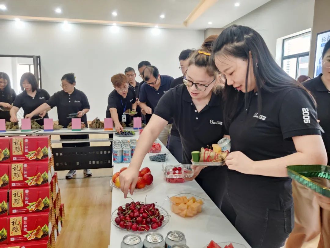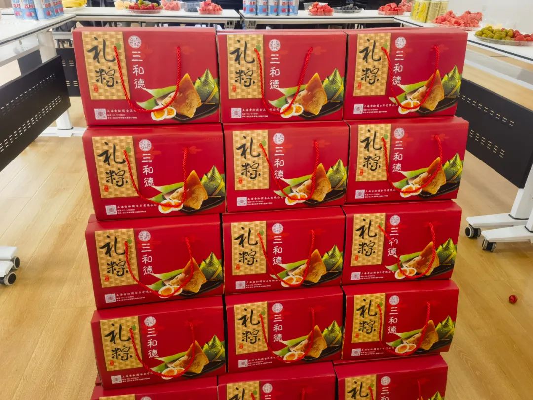 随后,公司给所有员工发放了节日福利——粽子礼盒,一粒粒粽子经过大家的手有了温度,给他们带去节日的温暖和问候。
