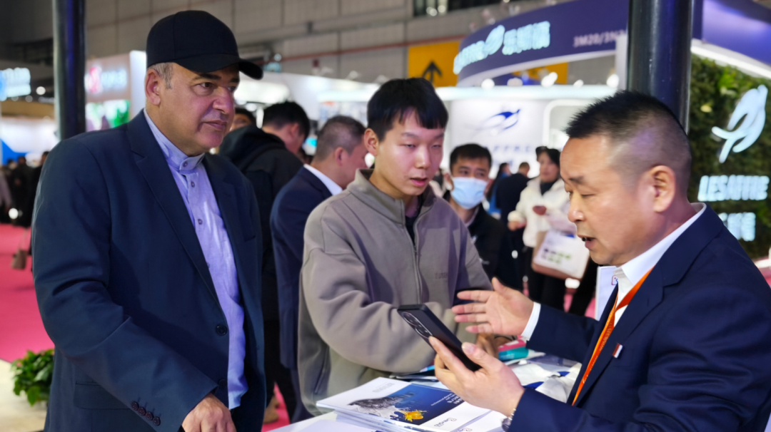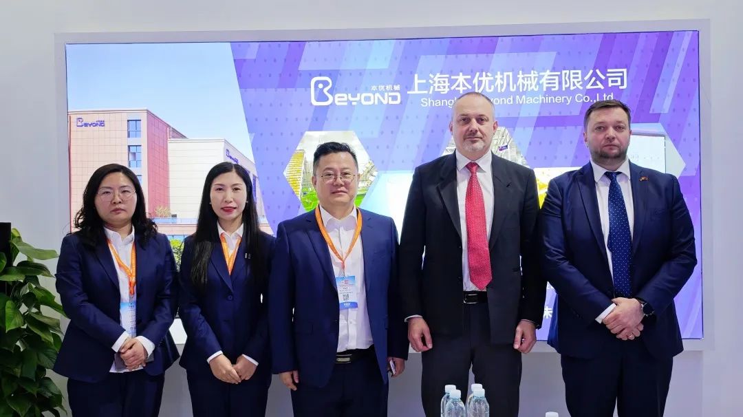 白俄罗斯驻沪总领事前来与我们会面,总裁胡金保专程带领白俄驻沪总领事安德烈耶夫·安德烈和经贸领事 哈劳科·康斯坦丁参观我们的展位,并与我们畅聊现下的经济形势行业前景及今后的相关合作事宜。