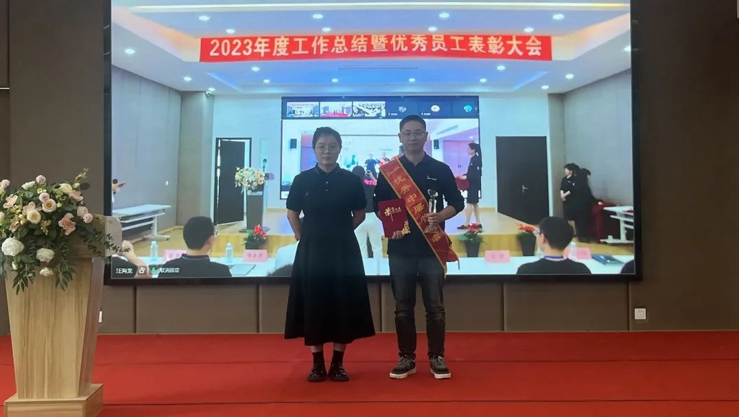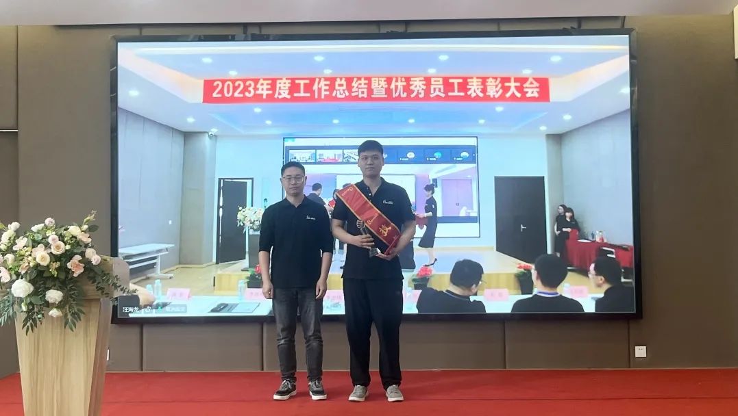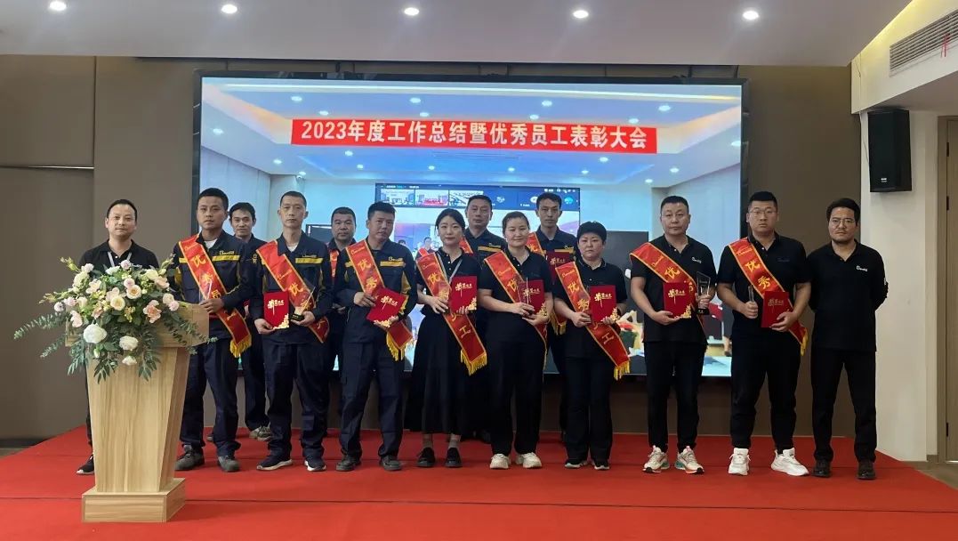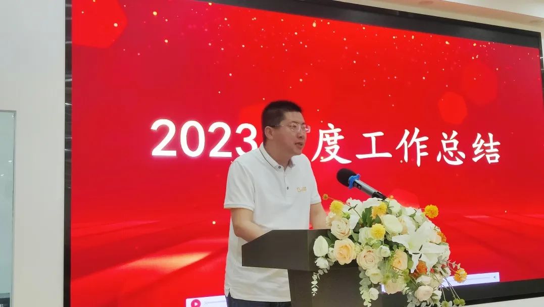总经理李忠伟向全体员工通报了公司2023经营年度的成绩,向受表彰的先进集体及个人表示祝贺,勉励受到表彰的集体和个人再接再厉,继续发扬工匠精神。
