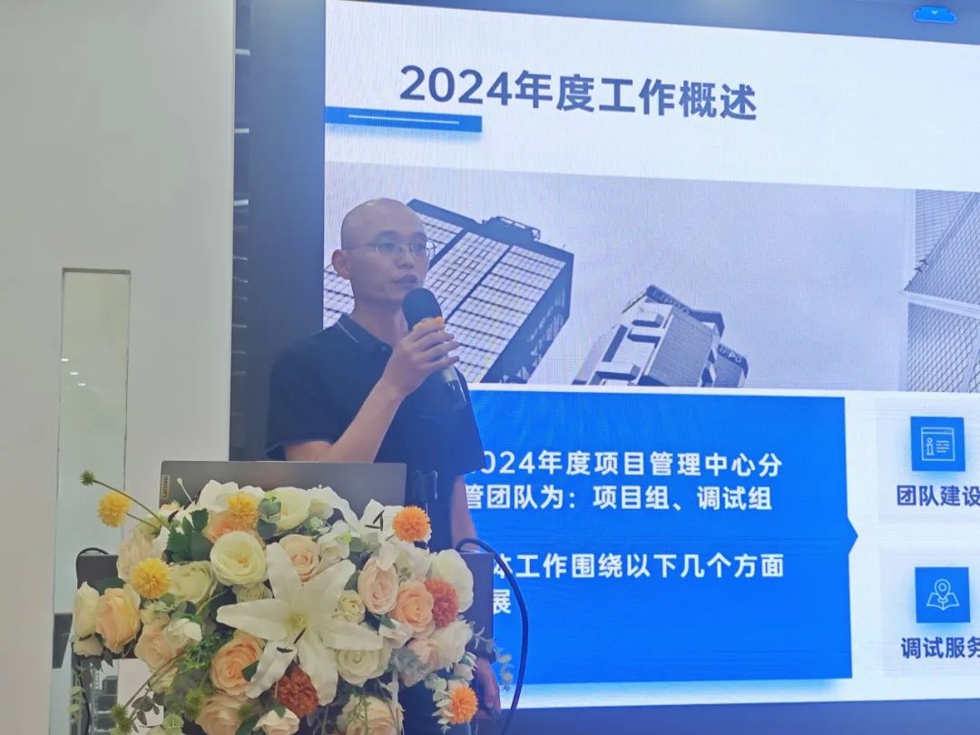 总监王水华就项目管理中心工作成果、计划等方面进行汇报,强调加强团队建设,打通资源共享渠道,着力解决合同管理与项目执行中的痛点问题,提出“一前置、三计划、四纪要、五会议”的工作计划。