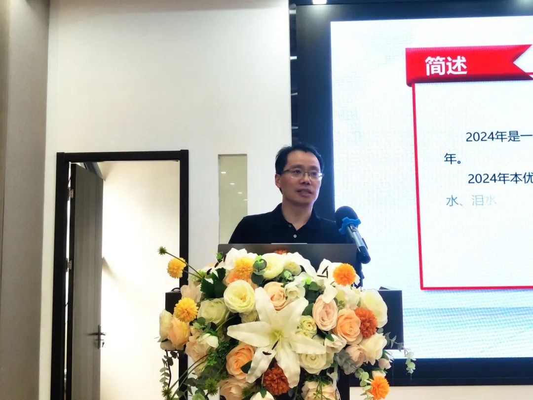 董事长胡金保发表讲话,高度肯定2024年取得的成绩,同时直面公司现存的管理协同与市场拓展两大核心问题。他号召大家秉持开放包容的态度,积极采纳跨部门建议;以创新驱动发展,以科技赋能产品,明确提出本次会议的核心目标——凝聚全员力量,共同谱写2025年发展新篇章。