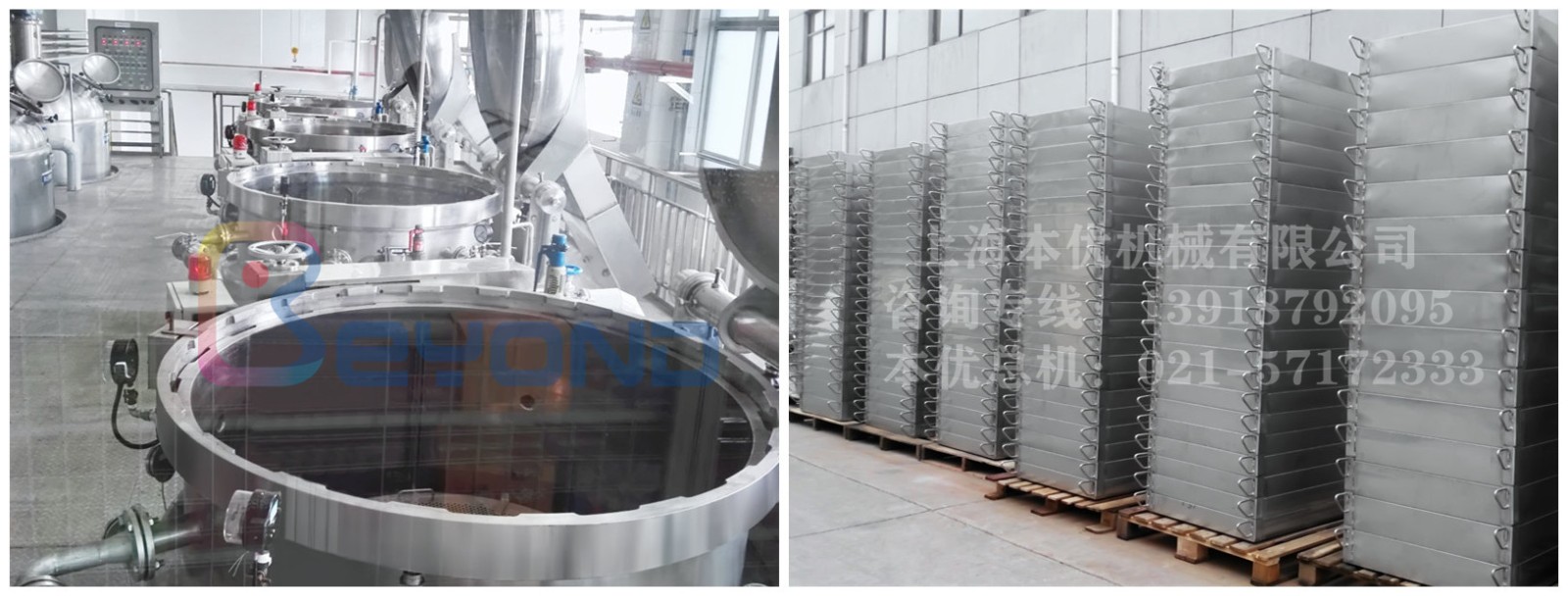 随着社会城镇化、工业化的发展、生活节奏的加快,酱卤制品作为标准化生产的快捷消费品,成为人们的“第二厨房”。目前卤制食品加工产业集中度和技术装备水平较低,基本采用夹层锅卤煮设备,产品品质不稳定,能耗高,废弃物多,难以实现自动化、劳动力密集。本优智能化卤煮系统应市而生。
